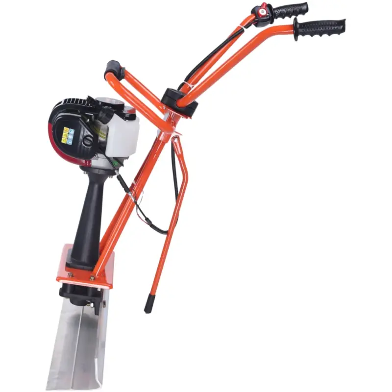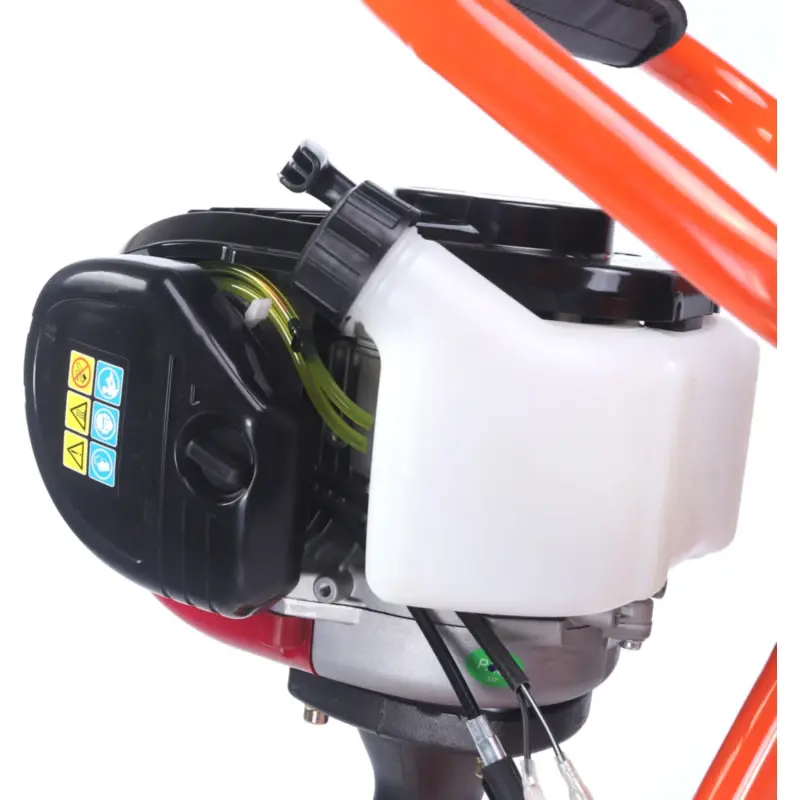 Работает от четырехтактного двигателя мощностью 1 л.с. и объемом 31 см3, который подходит для интенсивной эксплуатации. Аварийный выключатель позволяет мгновенно остановить машину.