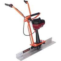 Профиль из легкого алюминиевого сплава оптимальной гладкой формы обеспечивает гладкое скольжение по бетону. Корпус из прочной нержавеющей стали устойчив к коррозии. Регулируемые по высоте прорезиненные рукоятки для простого управления устройством. Складная подножка надежно закрепляет устройство, не давая ему сдвинуться с места. Ручка с тканевой вставкой для удобства переноски.