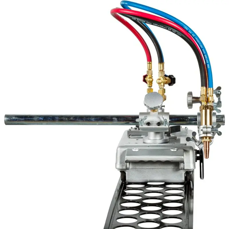 Машина термической резки ПТК CG-30 значительно повышает производительность работ по раскрою листового металла и формованного проката. Благодаря направляющим рельсам инструмент выполняет аккуратные прямые резы толщиной до 100 мм. С помощью циркульного устройства можно резать материал по кругу диаметром от 200 до 2000 мм. В качестве рабочего газа используется пропан/ацетилен. Газорезательная машина ПТК работает от однофазной сети напряжением 220 В. За счет электрического привода скорость реза составляет 50–750 мм/мин.