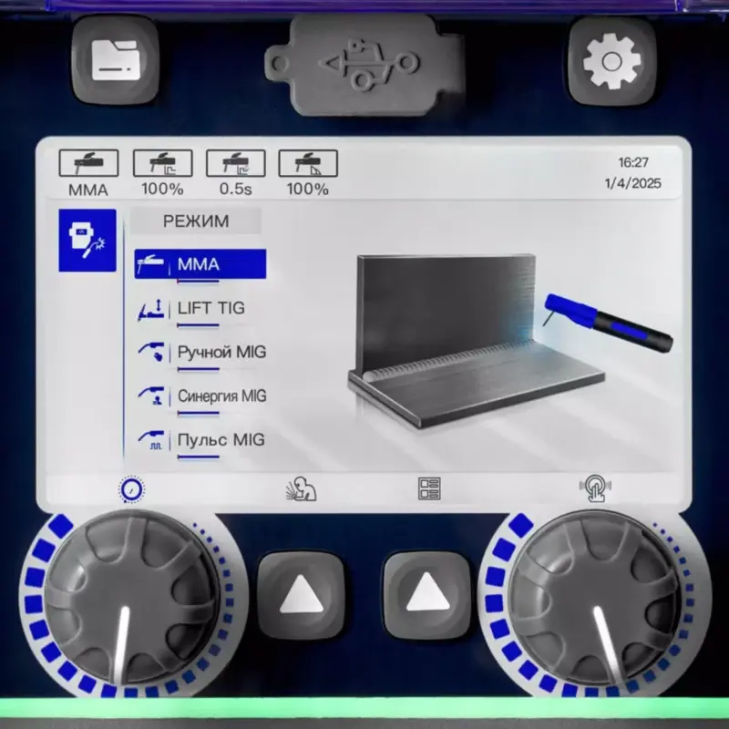 В аппарате предусмотрена дополнительная функция ручной дуговой сварки MMA металлов классическим способом. Дополнительный спектр опций: горячий старт, форсаж дуги, время горячего старта, пиковый ток.