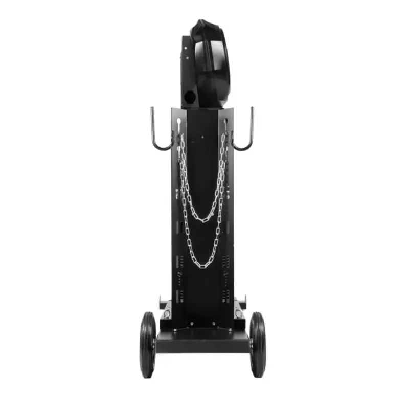 Оборудование поставляется в комплекте с тележкой для перемещения аппарата, подающего механизма, блока жидкостного охлаждения и баллона с защитным газом. Тележка обладает надежной усиленной конструкцией, где толщина металла около 3 мм.