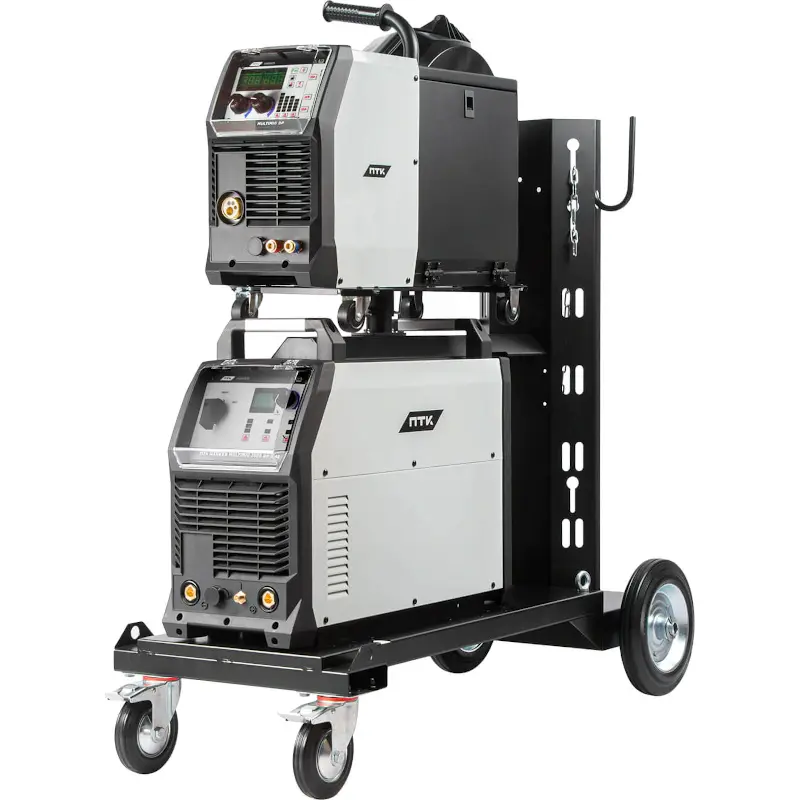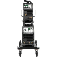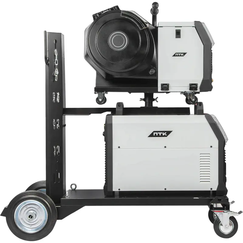 Аппарат поставляется в комплекте с тележкой для перемещения аппарата, подающего механизма и баллона с защитным газом. Тележка обладает надежной усиленной конструкцией, где толщина металла около 3 мм.