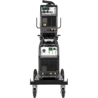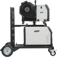 Аппарат поставляется в комплекте с тележкой для перемещения аппарата, подающего механизма и баллона с защитным газом. Тележка обладает надежной усиленной конструкцией, где толщина металла около 3 мм.