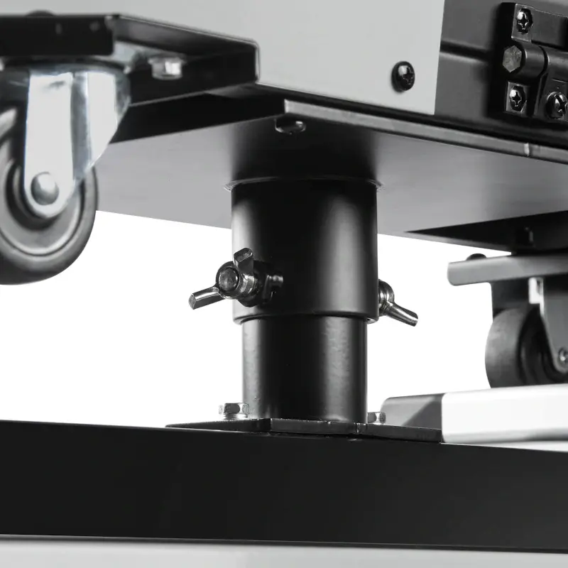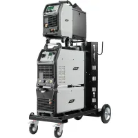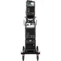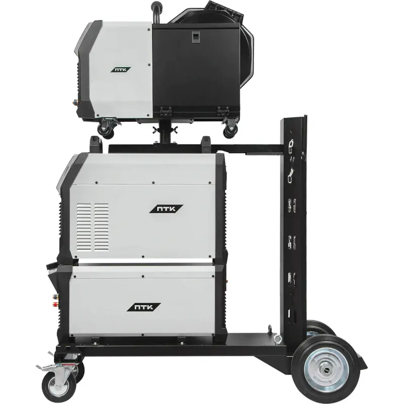 Аппарат поставляется в комплекте с тележкой для перемещения аппарата, подающего механизма, БЖО и баллона с защитным газом. Тележка обладает надежной усиленной конструкцией, где толщина металла около 3 мм. Передние вращающиеся колеса с тормозом и высокие устойчивые задние колеса обеспечат быстрое перемещение оборудования в сборе по рабочей зоне.
