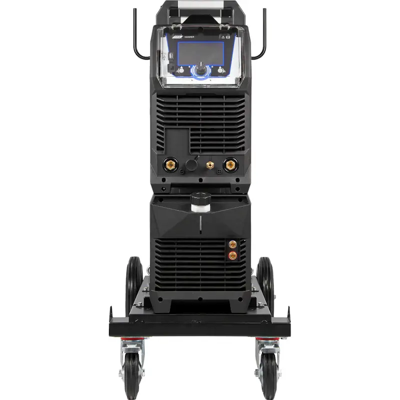 Функционал аппарата разнообразен и многогранен. На передней панели размещен цифровой дисплей с диагональю экрана 5 дюймов. Отображение параметров сварки происходит в реальном времени.