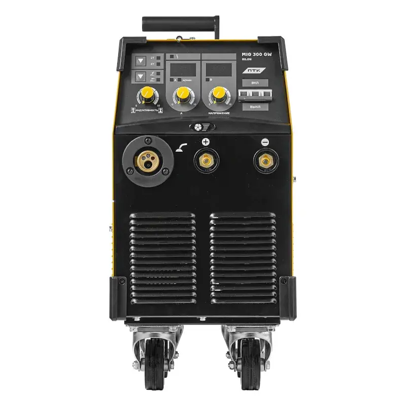 ПТК RILON MIG 300 GW (НАКС) – это обновленная линейка аппаратов для полуавтоматической сварки, которая производится на заводе RILAND. В аппаратах применяются усовершенствованные инверторные технологии. Принцип работы заключается в преобразовании переменного тока частотой 50Гц в постоянный ток и далее в ток высокой частоты (100 кГц), посредством мощных MOSFET транзисторов, а затем выполняется преобразование высокого напряжения в высокий ток. Выходная мощность источника регулируется при помощи ШИМ (PWM). Аппарат работает от трехфазной питающей сети в диапазоне ±15% без снижения характеристик.