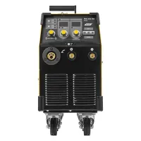 • На передней панели аппарата находится многофункциональный дисплей с возможностью регулировок силы сварочного тока, сварочного напряжения, индуктивности, регулировки скорости подачи проволоки и других параметров сварочного процесса.