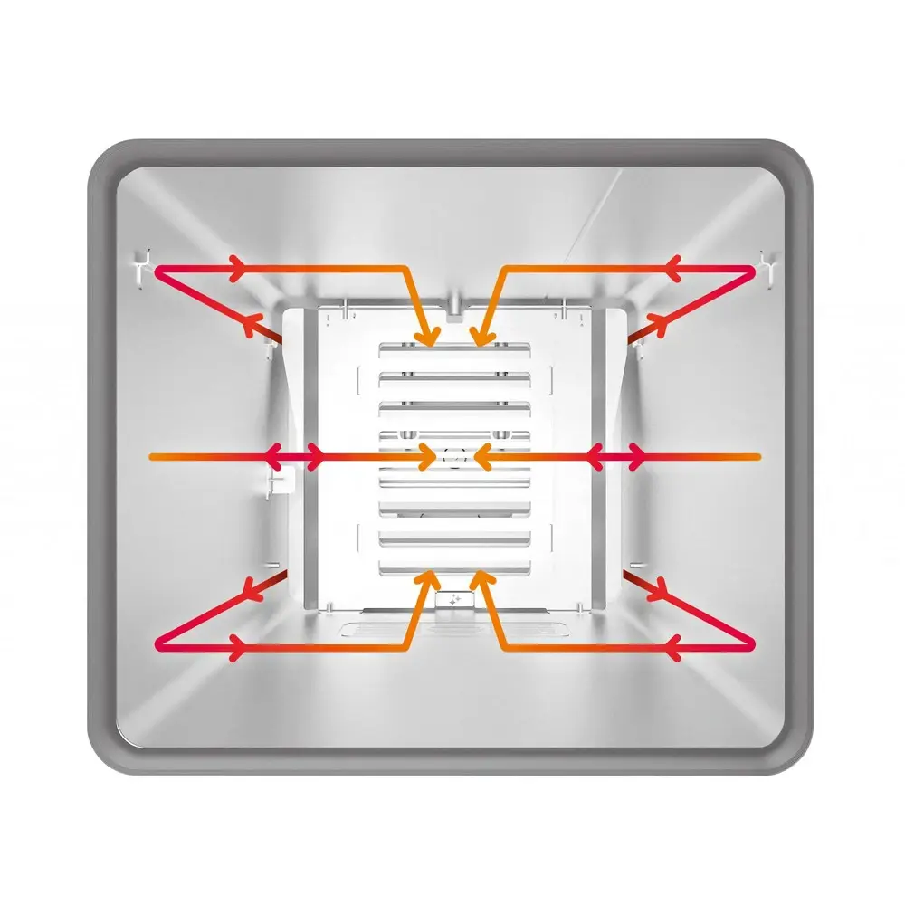 Технология Fan Plus - термодинамическая турбина с интеллектуальным управлением скоростью вращения вентилятора для равномерного приготовления пищи (2 скорости), автореверс.