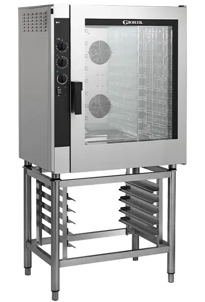 Пароконвектомат Giorik Easyair NEME102 предназначен для выпекания или разогрева кондитерских и хлебобулочных изделий, готовых блюд, замороженных или предварительно выдержанных в расстоечном шкафу заготовок из теста на предприятиях общественного питания и торговли.