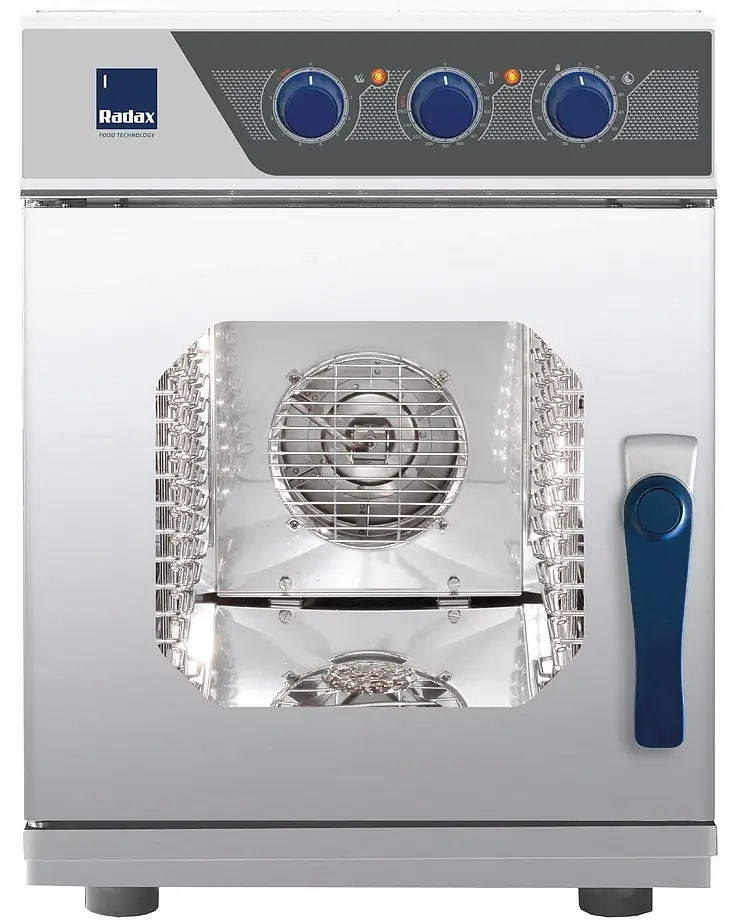 Пароконвенктомат Radax Turgenev TR63M0L предназначен для приготовления широкого ассортимента блюд на предприятиях общественного питания. С помощью подобного оборудования можно выпекать сдобные изделия, пироги, готовить сочные стейки, рыбу на пару и т.д.
