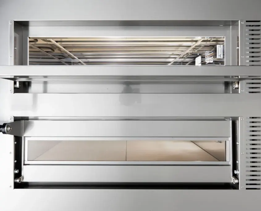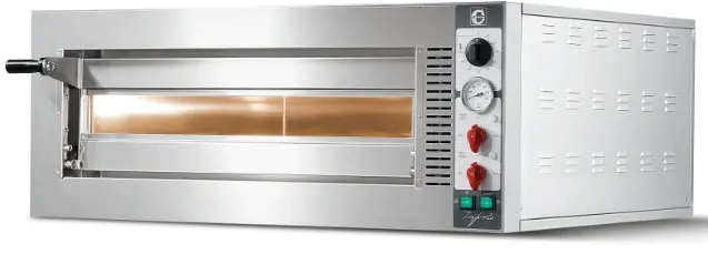Печь для пиццы Cuppone TP435/1CM с передней панелью и камерой выпечки из нержавеющей стали предназначена для приготовления пиццы и различных закусок, таких как, сэндвичи, куриные стрипсы и т.д. на предприятиях общественного питания.
