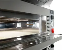 Печь для пиццы Cuppone TP935/2CM с передней панелью и камерой выпечки из нержавеющей стали предназначена для приготовления пиццы и различных закусок, таких как, сэндвичи, куриные стрипсы и т.д. на предприятиях общественного питания.