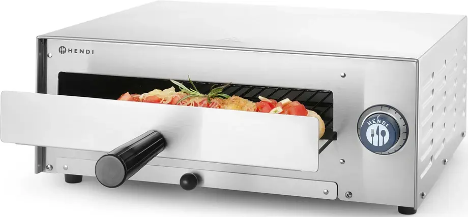 Печь для пиццы Hendi 220306 – отличное решение для разогрева полуфабрикатов, приготовления бутербродов с горячей начинкой, быстрого разогрева ранее выпеченной пиццы. Популярные в заведениях fast food, casual dining, кофейнях блюда, теплые десерты на основе охлажденных или замороженных полуфабрикатов также могут быть приготовлены за считанные минуты.