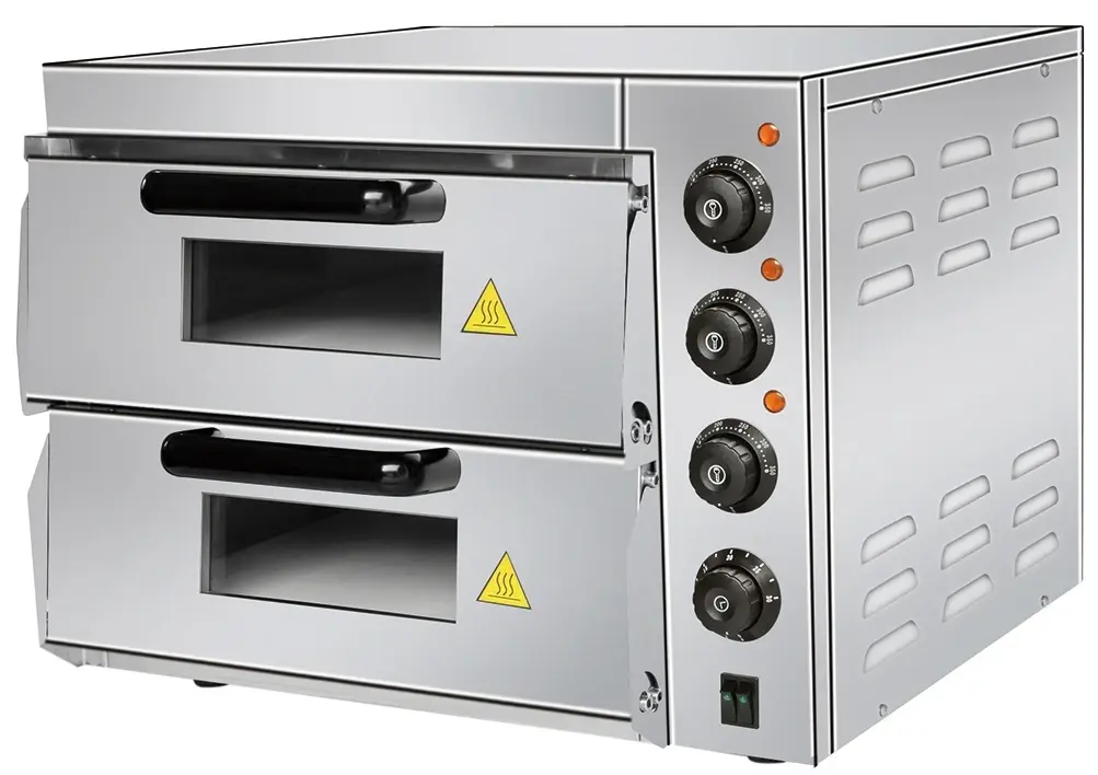Печь для пиццы Rosso HEP-2ST используется на предприятиях общественного питания и торговли для выпечки пиццы и хлеба.