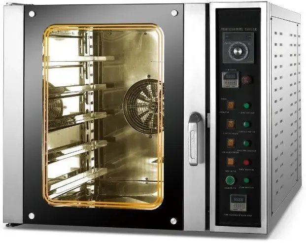 Принцип конвекции заключается в принудительном распределении горячего воздуха по всему пространству рабочей камеры. В конвекционной печи Danler BQ-5 есть 5 противней. Продуманная система воздуховодов распределяет воздух по всей печи, поэтому каждое изделие прогревается равномерно.