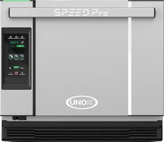 Печь Unox серии BakerLux Speed.Pro - первая в мире высокоскоростная печь, сочетающая два режима приготовления – Bake – традиционный конвекционный режим и Speed – высокоскоростной режим, сочетающий конвекционный и микроволновый нагрев на 1 уровень.