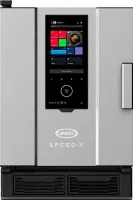 SPEED-X ™ - первая в мире высокоскоростная комбинированная печь с автоматической мойкой. Вместимость SPEED-X ™ - 10 противней GN 2/3 с шагом 35 мм или 5 противней GN 2/3 с шагом 70 мм в комбинированном режиме и противень SPEED.Plate для одновременного приготовления 4 блюд в скоростном режиме. Революционная технология HYPER.Speed - сочетание конвекции, пара и микроволн - значительно сокращает время приготовления сэндвичей и полуфабрикатов по сравнению с традиционными скоростными печами. Система мойки со встроенным контейнером для моющего средства упрощает очистку после скоростного приготовления овощей, мяса, рыбы и многого другого. Камера из нержавеющей стали AISI 316L в сочетании с системой фильтрации воды RO.Care позволяет подключать SPEED-X ™ к водопроводной сети без использования внешних фильтров даже в случае очень жесткой воды или воды с высоким уровнем хлоридов.