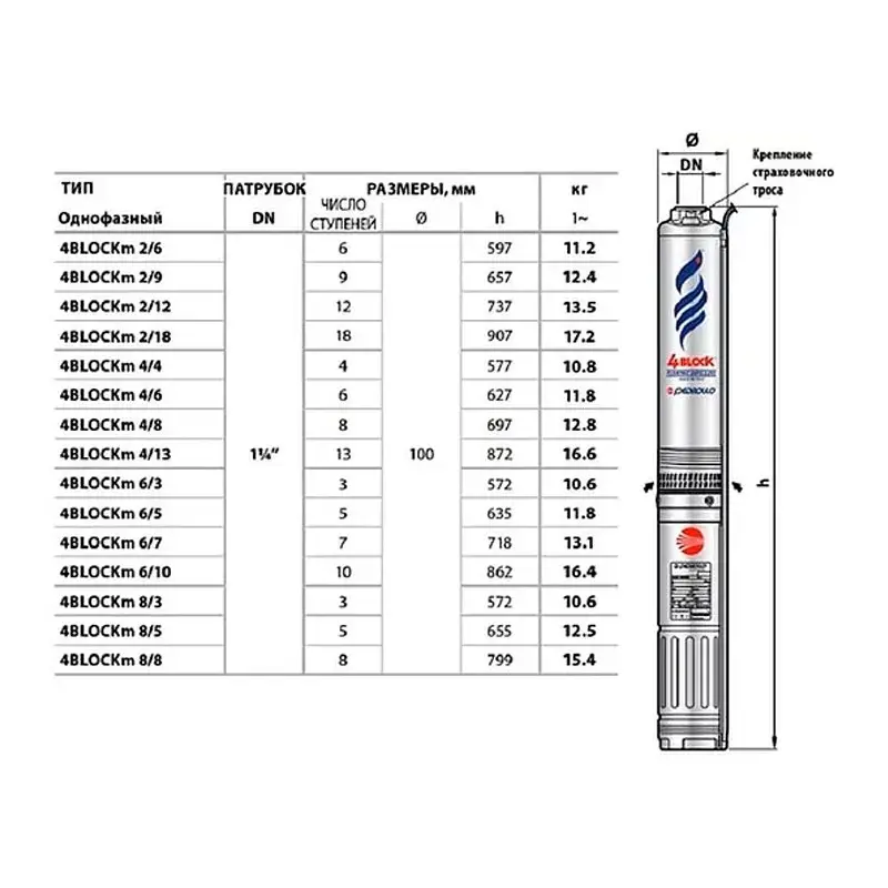 Фирма PEDROLLO предлагает на рынке электронасосов для 4-дюймовых скважин модель 4BLOCK, которая является одним из лидеров рынка по эксплуатационным характеристикам и в частности по стойкости к песку, которая гарантируется до 150 г/м3. Электронасос предназначен для эксплуатации в быту для подъема воды с содержанием песка до 150 г/м3. Моноблочный скважинный 4-дюймовый электронасос создан в качестве нового, более экономичного и надежного изделия. Насос поставляются в комплекте с конденсатором внутри двигателя и кабелем электропитания длиной 20 м, что облегчает и упрощает установку.