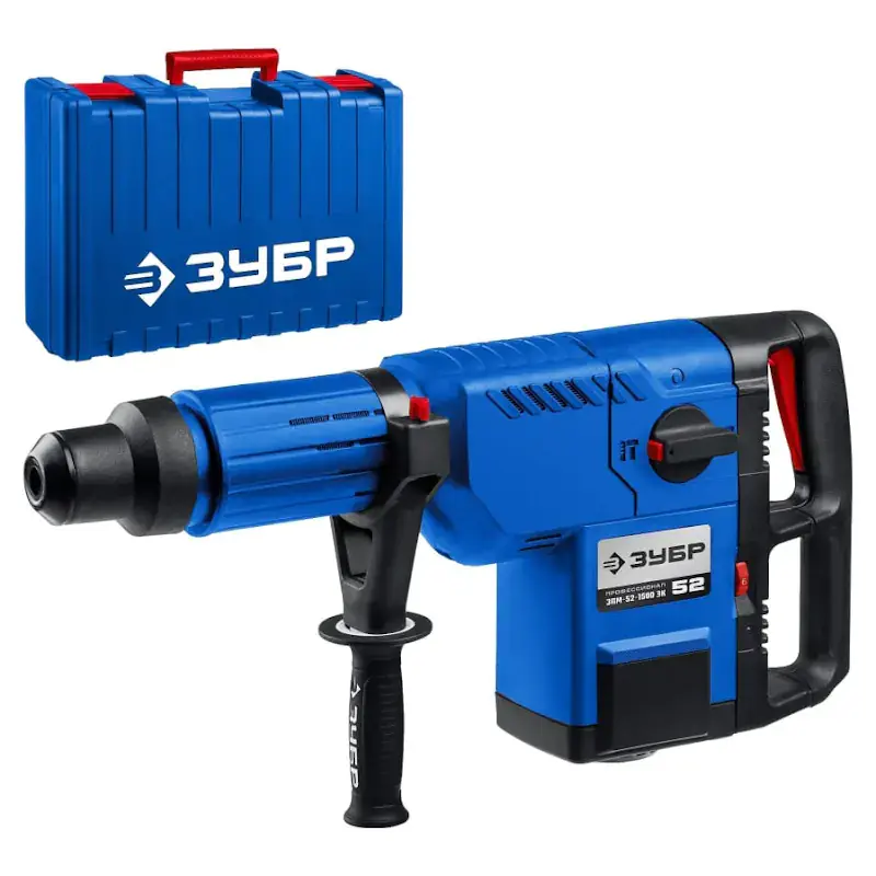 Перфоратор ЗУБР ЗУБР ЗПМ-52-1500 ЭК мощностью 1500 Вт оснащен 2 режимами работы - сверление с ударом и долбление, а также оборудован патроном SDS Max. Максимальный диаметр бурения в бетоне составляет 52 мм. Поставляется упакованным в пластиковый кейс, в комплекте с дополнительной рукояткой, глубиномером и смазкой для бура.