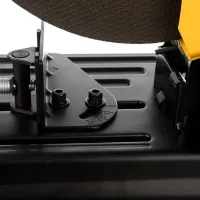 Защитный кожух установлен на пружинный механизм и автоматически закрывает режущий диск при поднятии рабочей части монтажной пилы. Деталь ограждает от искр и исключает контакт рук с абразивом.