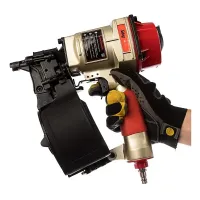 Инструмент нельзя включить, если не снять его с предохранителя. Это исключает случайное срабатывание гвоздезабивного пистолета, повышая безопасность использования инструмента.