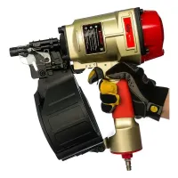 Пневмопистолет подключается к источнику сжатого воздуха через штуцер диаметром 1_4 дюйма и шланг диаметром 3/8 дюйма, расходует 1,7 л воздуха на один удар. Вы можете загрузить в магазин сразу 250-300 гвоздей с сечением ножки 2,3-2,9 мм. Опора под гвозди регулируется в вертикальной плоскости в четырех положениях по меткам обозначенным в дюймах и миллиметрах внутри магазина.