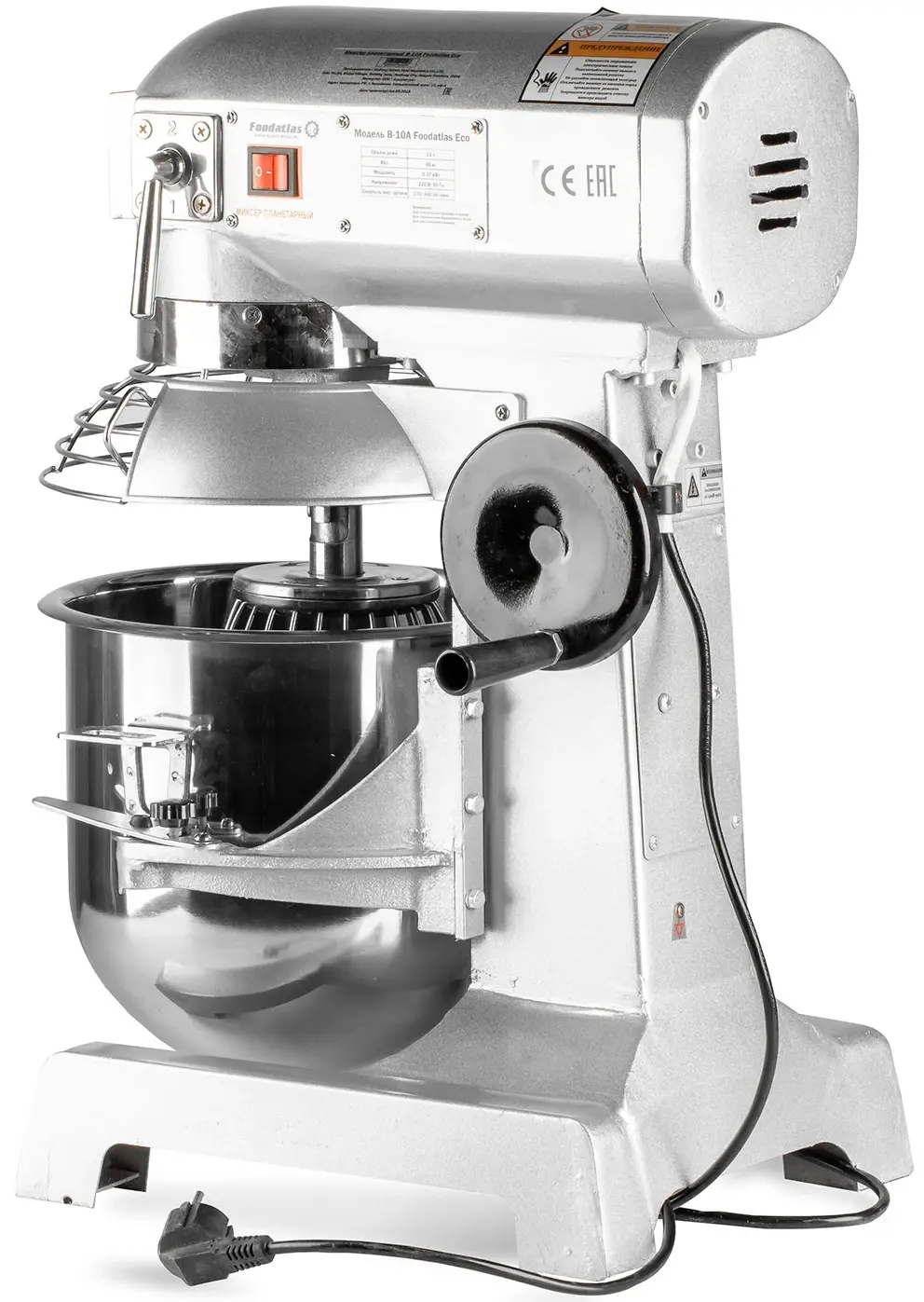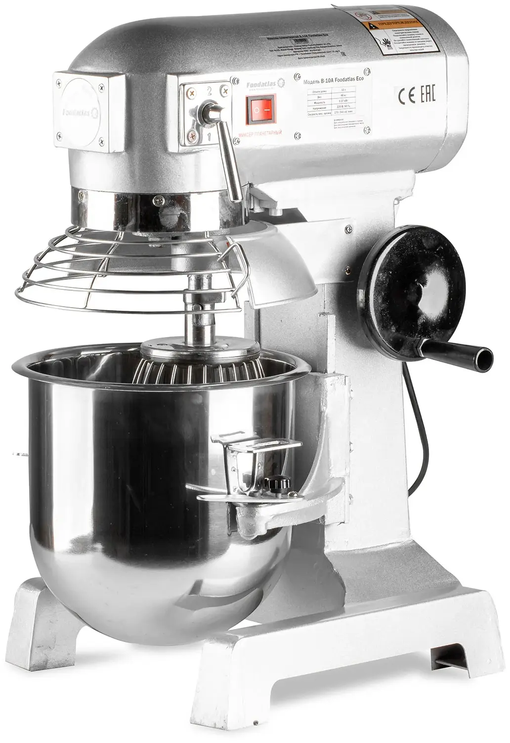 Планетарный миксер FoodAtlas Eco B-10A используется на предприятиях общественного питания и торговли замеса жидкого теста, кремов, начинок и прочих жидкостей.