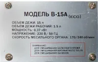 | Объем дежи | 15 |