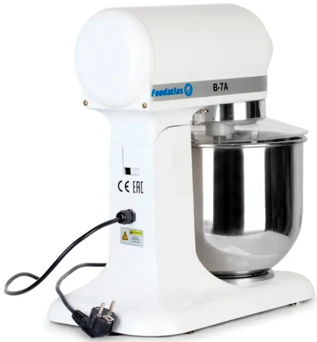 Планетарный миксер FoodAtlas Eco B-7A используется на предприятиях общественного питания и торговли замеса жидкого теста, кремов, начинок и прочих жидкостей.