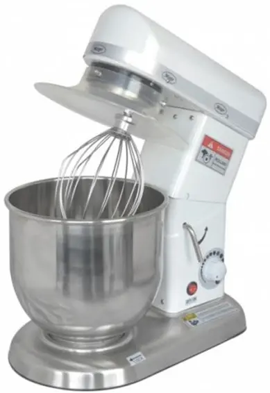 Планетарный миксер Hualian Machinery В5 применяется для приготовления различных видов негустого теста (бисквитного, пирожкового, блинного и пр.), кремов, суфле, соусов. Планетарный редуктор обеспечивает поворот вращающегося месильного органа вокруг центра дежи.
