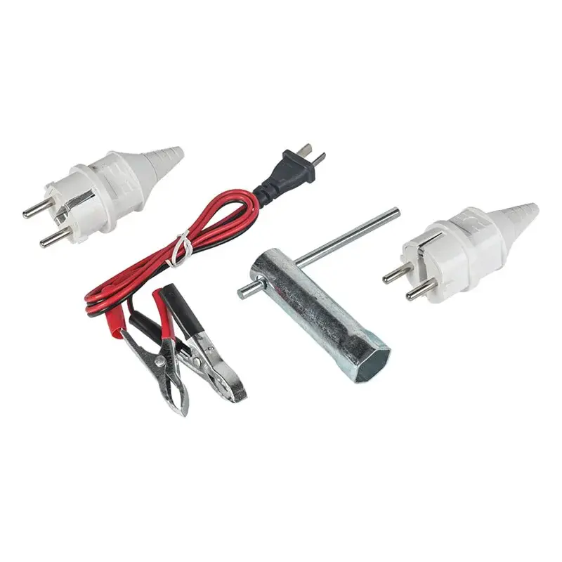 На панели управления генератора располагаются 3 розетки на 220 В. Все разъемы имеют пластиковые заглушки с пружинным механизмом. Это предотвращает попадание внутрь влаги и грязи. Рядом находится выход на 12 В. С его помощью можно легко подзарядить севшую аккумуляторную батарею.
