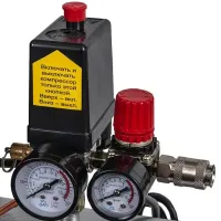 Мощности профессионального воздушного компрессора хватает для использования различного оборудования — продувочного пистолета, шуруповерта, гайковерта или краскопульта. Аппарат оснащен регулятором, который позволяет установить точный уровень давления для нормальной работы пневмоинструмента. Показания удобно контролировать с помощью манометров на ресивере и на выходном штуцере.