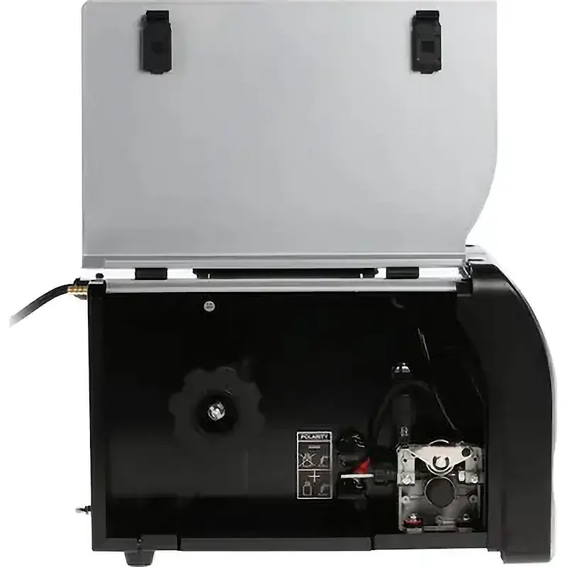 Система охлаждения состоит из встроенных вентиляторов и радиаторов. Благодаря ей вы можете работать длительное время. В передней части аппарата расположены разъемы для подключения сварочных кабелей. Они сделаны таким образом, чтобы подготовка полуавтомата к работе занимала минимальное количество времени.