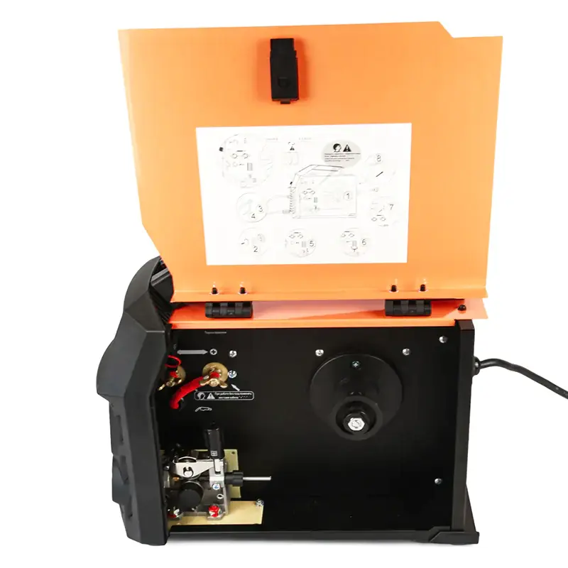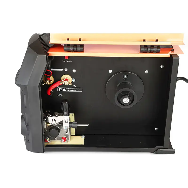 Все элементы управления устройством, такие как: рукоятки регулирования силы тока и скорости проволоки, индикаторы работы системы, переключатель способа сварки, - вынесены на переднюю панель.