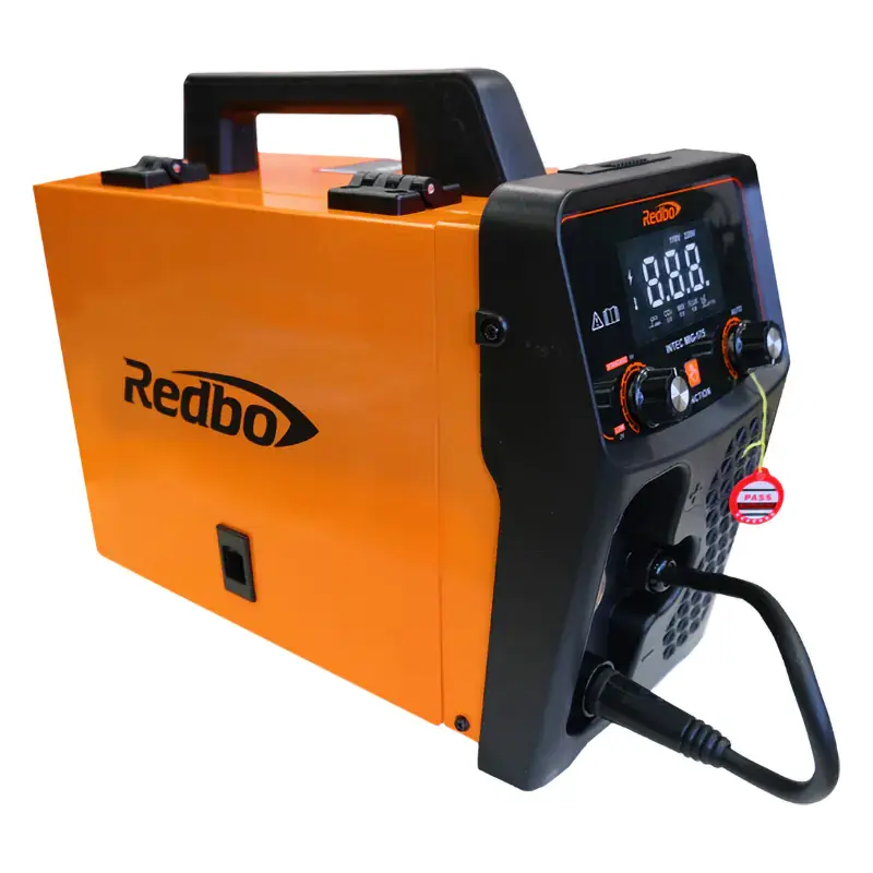 На большом светодиодном дисплее отображается напряжение питающей сети, значение сварочного тока, индикация питания, режима сварки и состояния перегрева. Поворотные регуляторы позволяют регулировать скорость подачи проволоки, значение тока сварки и выходного напряжения. Инверторный сварочный полуавтомат MIG/MAG Redbo поддерживает три режима сварки с использованием газовой смеси и два метода без использования газа.