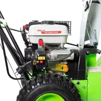 Снегоуборщик оснащен колесами с глубоким протектором, они упрощают перемещение и предотвращают пробуксовку на обледенелых участках.