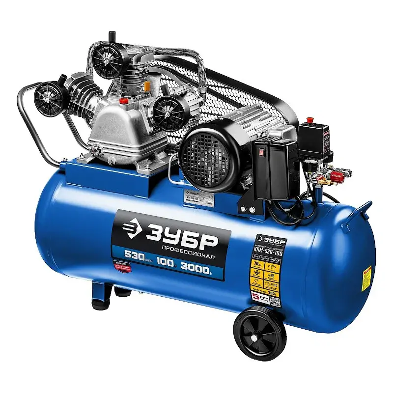 Компрессор Зубр КПМ-530-100 – профессиональный инструмент, отвечающий за подачу сжатого воздуха производительностью до 530 л/мин. Аппарат подключается к пневмоинструменту и применяется для выполнения широкого спектра ремонтных и строительных работ.