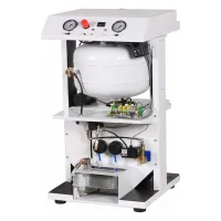 Компрессор безмасляный с прямым приводом предназначен для обеспечения сжатым воздухом стоматологического, медицинского, лабораторного оборудования и инструмента. Конструкция компрессора на предусматривает наличие масла. Особенностью модели является ее малошумность, благодаря чему компрессор можно разместить в любом помещении медицинского учреждения. Ресивер выполнен из качественной стали и покрыт внутри полимерным покрытием, что обеспечивает стойкость к коррозии и высокие эксплуатационные свойства. Компрессор способен работать после включения в автоматическом режиме. Исполнен в шумозащитном корпусе.