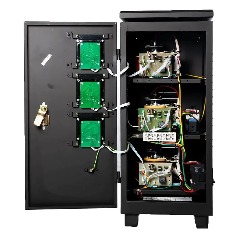 Трехфазный стабилизатор электромеханического типа РЕСАНТА обеспечивает точность работы аппарата и снижают частотные помехи, не допуская искажений в выходном сигнале. Благодаря этому стабилизатор можно использовать для трехфазных приборов которые чувствительны к помехам.