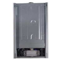 Закрытая камера сгорания с выводом через коаксиальный дымоход диаметром 60/100 мм. Все патрубки выполнены стандартного диаметра (_ дюйма для отопления и _ дюйма для горячей воды), что облегчает монтаж и эксплуатацию. Максимальная интенсивность потребления природного газа — 1,35 м3/ч, что подтверждает высокую эффективность и экономичность котла.