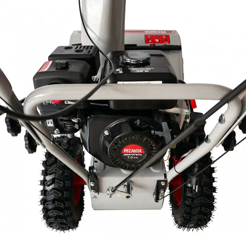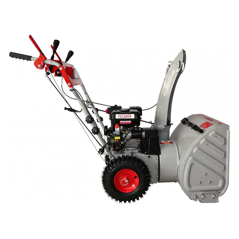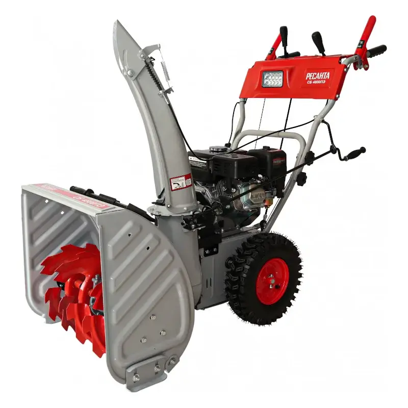 Бензиновый снегоуборщик Ресанта СБ 4800ПЭ – модель профессионального класса с электростартером и двигателем мощностью 7 л.с. Ширина захвата за один проход составляет 56 см, чего достаточно для расчистки подъездных дорожек, парковочных мест и придомовой территории.