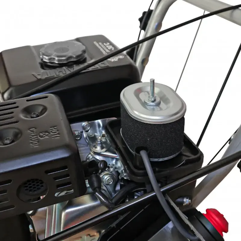 Скорость передвижения настраивается отдельным рычагом. На выбор есть 6 передних скоростей, а также 2 задних. Последнее будет актуально при застревании колес в снегу, разворотах на узких дорожках или во время парковки.