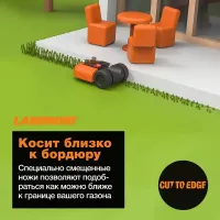 При обнаружении сигнального ограничительного провода косилка отъезжает от него, разворачивается и продолжает кошение в другом направлении. Технология искусственного интеллекта постоянно анализирует ситуацию и определяет оптимальный маршрут для равномерной стрижки газона без пропусков. Робот-газонокосилка WORX срезает траву, измельчает ее и распределяет на поверхности в качестве удобрения. Как только уровень заряда станет низким или пойдет дождь, робокосилка возвращается на базу. Время зарядки батареи составляет примерно 75 минут.