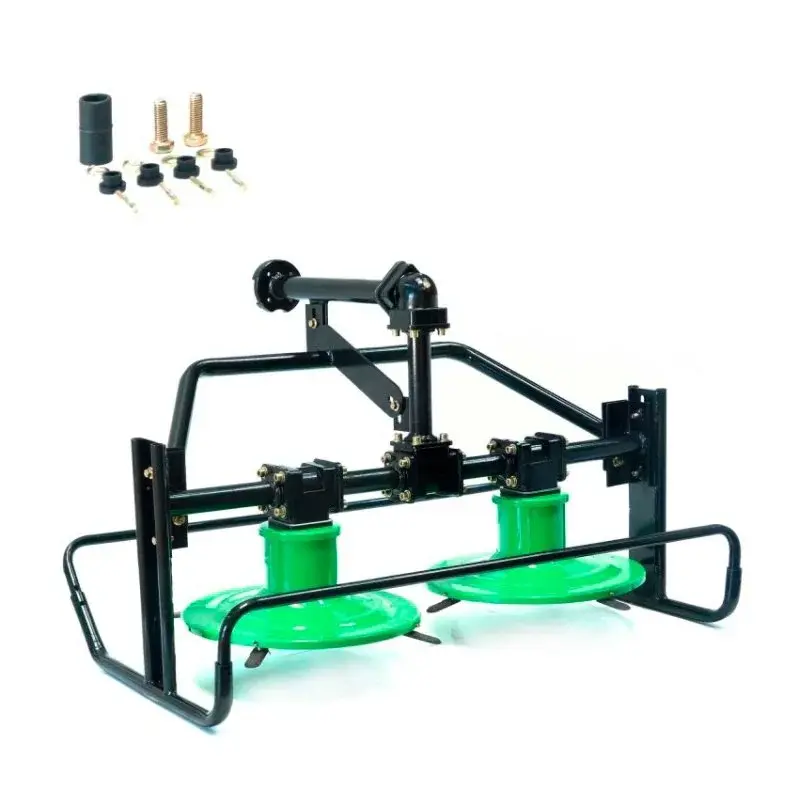 Роторная косилка предназначена для работ по заготовке сена и соломы. Устройство подходит для использования в полях с различными типами густой и высокой травы, для зерновых культур и даже кустарника (с толщиной стебля не более 10 мм). Диски косилки вращаются навстречу друг другу, 8 ножей, находящихся по сторонам дисков, под действием центробежной силы выходят за края кожуха и срезают траву. С помощью механизмов настройки, оператор сможет увеличить или уменьшить высоту стерни. Среди преимуществ роторных косилок, стоит отметить их высокую надёжность, безопасность для оператора и способность укладывать скошенную траву в рядки, что избавляет покупателя от необходимости делать эту операцию вручную с помощью граблей. Роторная косилка Grass 1000 подходит к моделям: COUNTRY 1000 в зелёном дизайне.