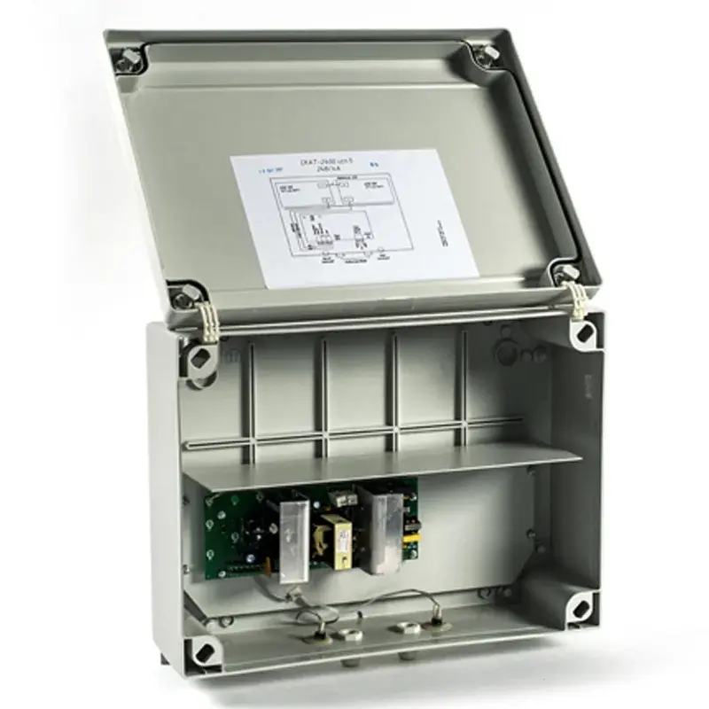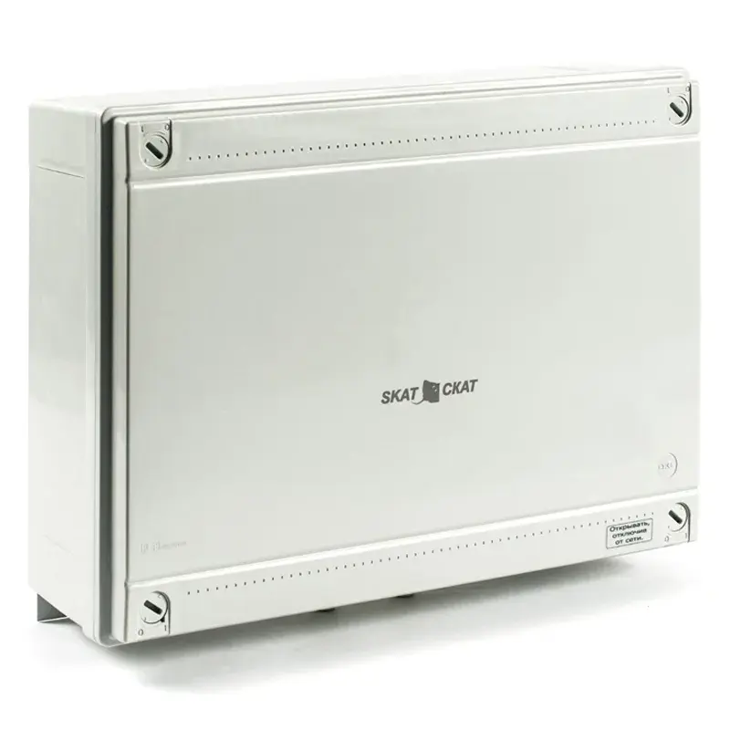 Изделие СКАТ – 1200 исп.6 предназначено для обеспечения бесперебойным питанием систем охранно-пожарной сигнализации, систем видеонаблюдения и других потребителей с номинальным напряжением питания 12В постоянного тока и токами потребления 4,0А, а также резервного электропитания устройств с токами потребления до 4,5 А. Изделие имеет герметичный корпус и рассчитано на круглосуточный режим работы на открытом воздухе при температуре окружающей среды от -40С до +50С. ОСОБЕННОСТИ СКАТ-1200 ИСП.6 питание нагрузки стабилизированным напряжением согласно п.2 таблицы в режиме «ОСНОВНОЙ» (при наличии сетевого напряжения) и в режиме «РЕЗЕРВ» (в отсутствии сетевого напряжения); световая индикация режима работы: при наличии сети светодиод «СЕТЬ» зелёного цвета свечения включён и горит ровным светом, при наличии выходного напряжения светодиод «ВЫХОД» красного цвета свечения включён и горит ровным светом; автоматический переход на резервное питание от аккумуляторной батареи при отключении электрической сети, режим «РЕЗЕРВ»; оптимальный заряд АКБ при наличии напряжения сети, режим «ОСНОВНОЙ» (п.7 таблицы); ограничение степени разряда АКБ при отсутствии сети; защита изделия при помощи самовосстанавливающегося предохранителя от неправильного подключения клемм АКБ; защита от кратковременного короткого замыкания клемм АКБ; защита от короткого замыкания на выходе с отключением выходного напряжения; автоматическое восстановление выходного напряжения после устранения причины замыкания; защита нагрузки от аварии изделия; функция «холодный пуск», обеспечивающая восстановление работоспособности изделия при подключении исправной и заряженной АКБ в отсутствии сетевого напряжения; возможность совместной работы с термостатом АКБ 12/7 или термостатом АКБ 12/12 для поддержания положительной температуры АКБ при отрицательной температуре окружающей среды; возможность установки внутри корпуса источника на монтажную панель устройств пользователя.