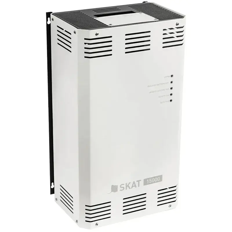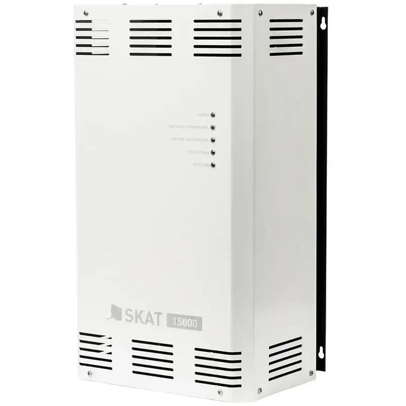 Стабилизатор напряжения SKAT ST-15000 обеспечивает качественное питание нагрузки в широком рабочем диапазоне входного напряжения от 140 до 275 В, расширенный диапазон составляет 80–285 В. Точность стабилизации достигает 7%; скорость переключения — 0,01 секунды. Стабилизатор рассчитан на подключение к нему оборудования с потребляемой номинальной мощностью до 11000 Вт.