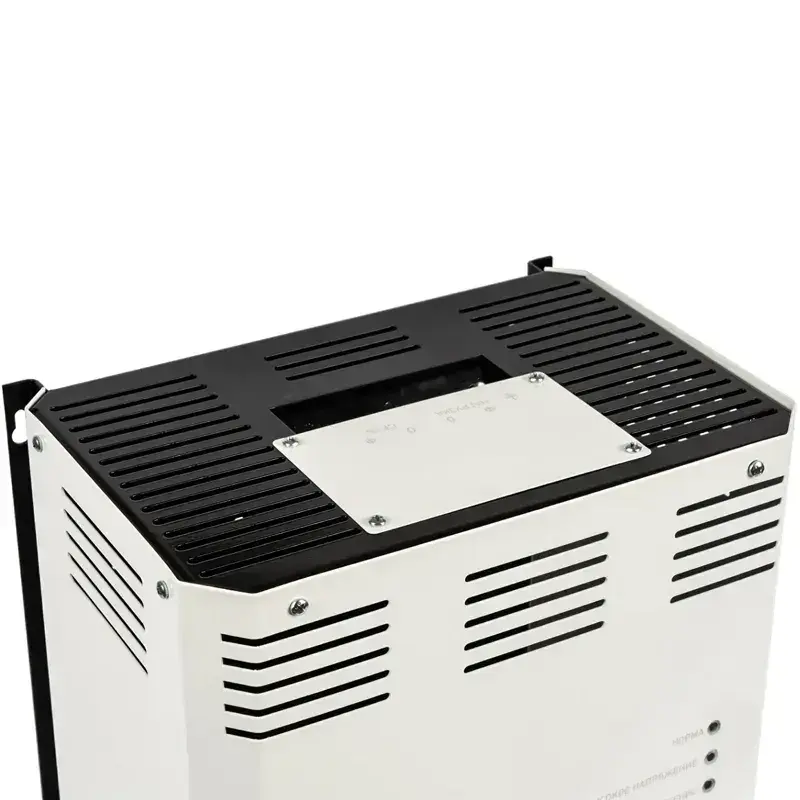 Устройство обеспечивает на выходе постоянное напряжение в пределах 205–235 В, сглаживая всплески и проседания на входе. Лицевая панель оборудована светодиодными индикаторами, которые сигнализируют об аварийных ситуациях и режимах работы. Подключение питающей сети и нагрузки осуществляется через клеммную колодку. Однофазный стабилизатор напряжения работает в автоматическом режиме.