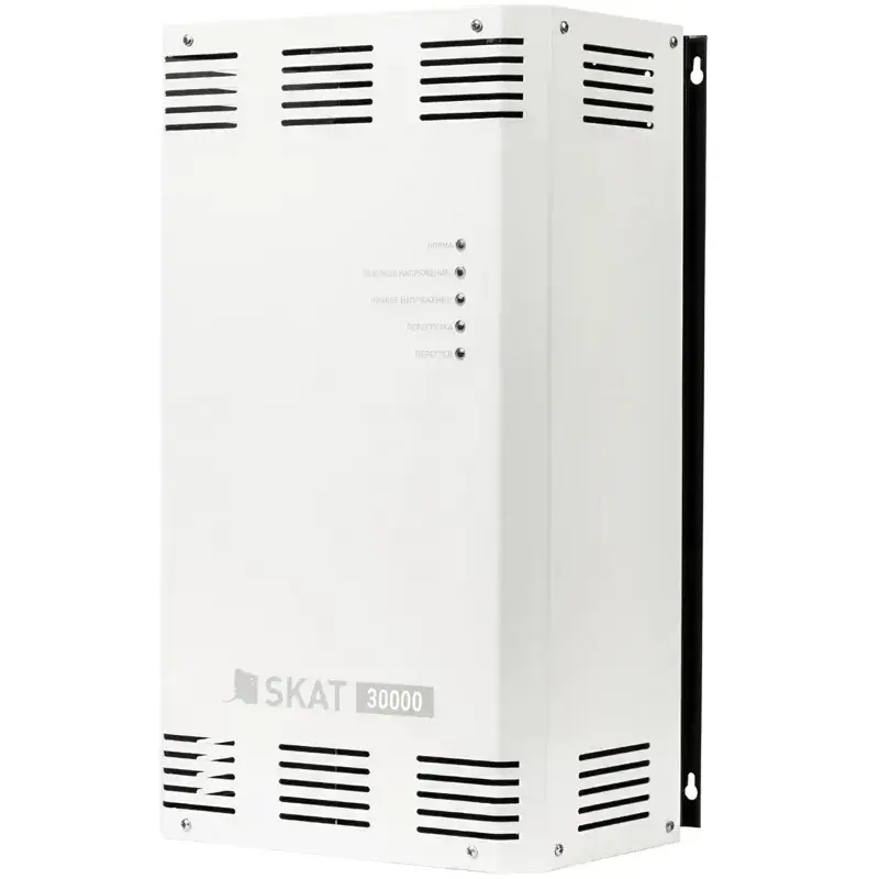 Стабилизатор SKAT ST 30000 - это высококачественное устройство для защиты электроприборов от перепадов и скачков напряжения в сети. Он обеспечивает стабильное выходное напряжение в диапазоне 205-235 В при входном напряжении от 145 до 275 В. Стабилизатор имеет пять ступеней стабилизации и быстро реагирует на изменения в сети, переключаясь за 10 мс.