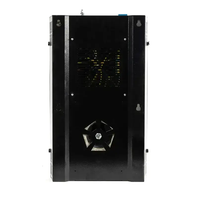 Для удобства управления однофазный стабилизатор напряжения оборудован цифровым дисплеем, сенсорными кнопками, индикаторами перегрева и перегрузки по току. Устройство работает в автоматическом режиме, может функционировать в расширенном диапазоне от 80 до 295 В, обеспечивая защиту от просадки или скачков входного напряжения в сетях с крайне нестабильными характеристиками. Переключение производится длительным нажатием кнопки выбора параметров.