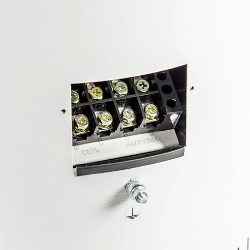Особая конструкция корпуса обеспечивает конвекционное охлаждение внутренних элементов, а также полную бесшумность в работе. Для защиты от перегрева предусмотрена многоуровневая система, которая состоит из датчиков температуры и реле. При повышенной температуры внутри корпуса произойдет автоматическое отключение стабилизатора. Это поможет избежать перегрева устройства. В качестве дополнительной защитной меры предусмотрен автоматический выключатель.